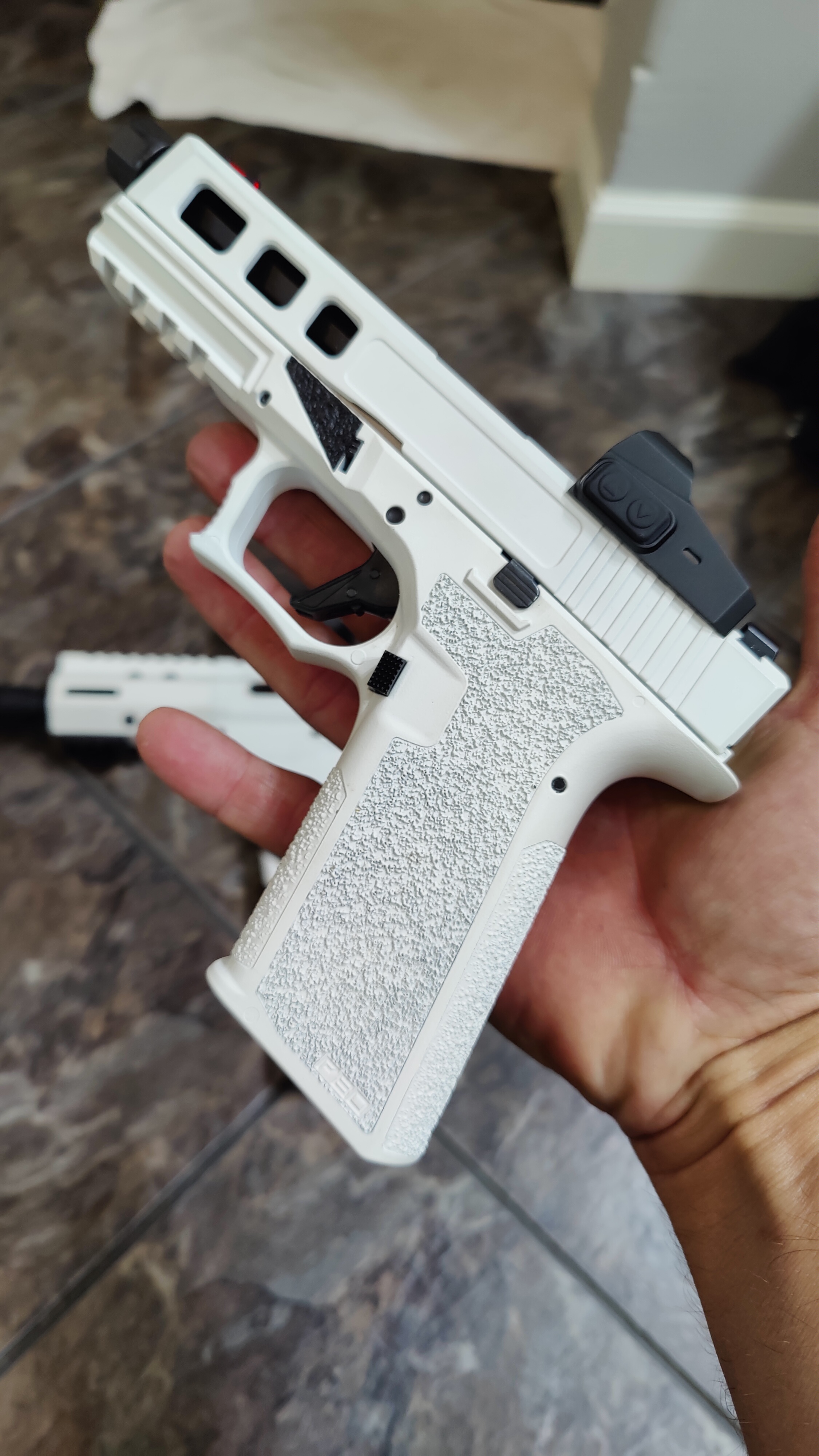 I actually wanted to have the grip panel area on the P80 to stay black but I think the cerakote guy misunderstood me and I didn't want to wait any longer for him to re do it so I figured I might have it stippled.