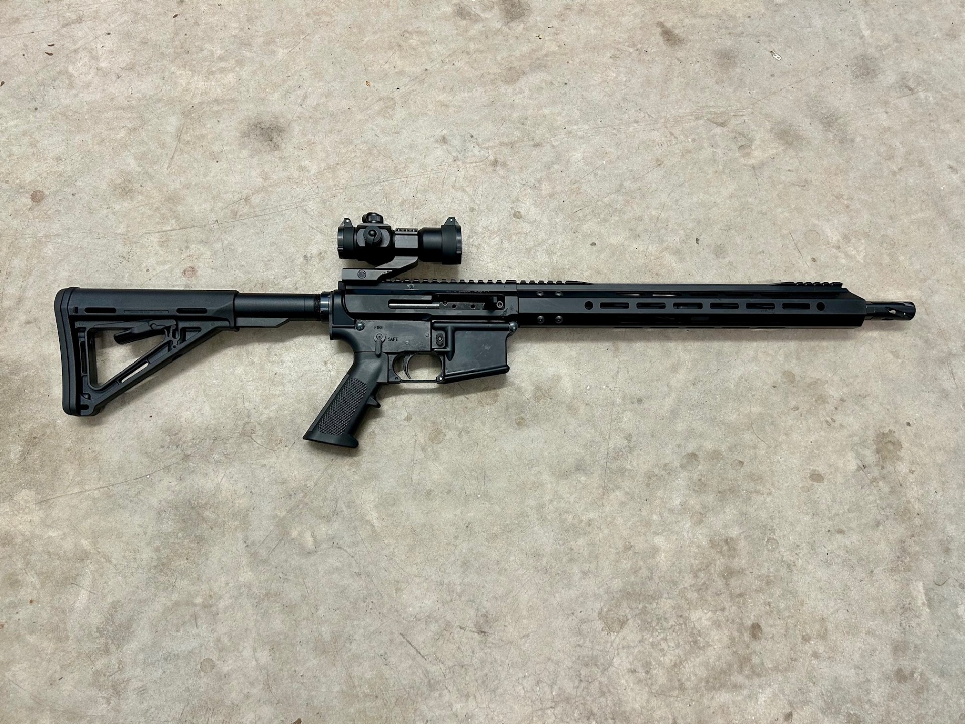I recently completed the build-out of my first 80% AR-15 lower. Initially, I had the lower on a Colt 6920 upper for testing, but it now has a permanent home. I used the 5D jig with an anodized lower and lower parts kit from Right to Bear. The upper is a side-charger with a 16" barrel and a red/green dot sight from Bear Creek Arsenal.