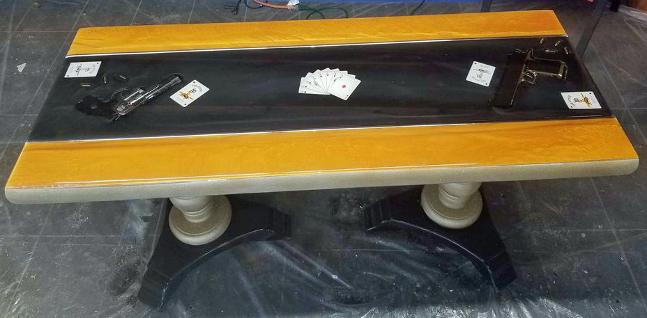 I think I witnessed the table on the local guntrader for $2500. Those are REAL guns apparently, urethaned in place...