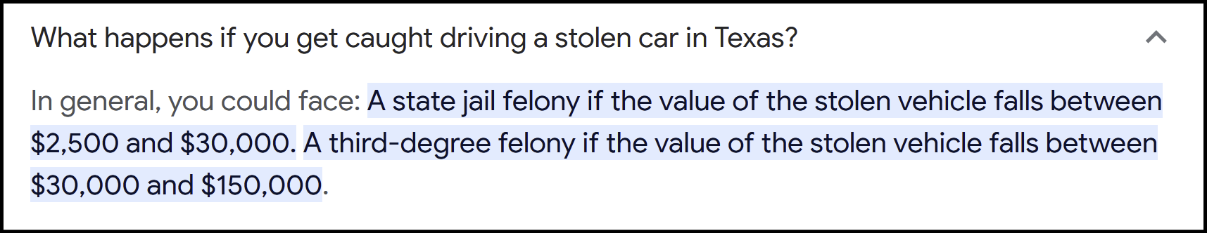 Is possession of a stolen vehicle the same as the act of stealing it?
