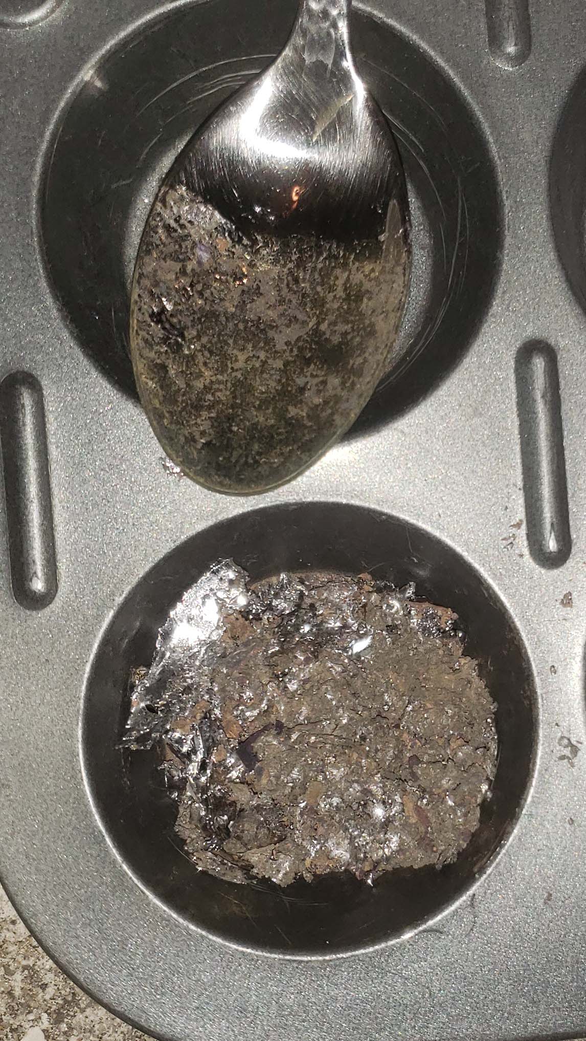 Back home, I took about 5min to give the melter a quick detail and dump and blow the pot. Couldn't tell what was in the pot so I took another 5min and scraped the crud off the top and there was what appeared to be lead in the pot.