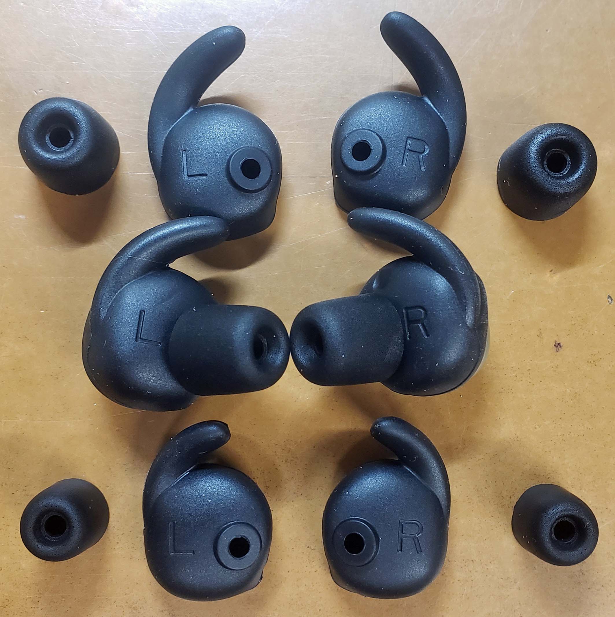 I got a pair of blue tooth ear buds for my phone - for listening to music or books while on the treadmill... assuming I get ON the treadmill. They are the Bose Quiet Comfort model, and like most Bose products... not cheap. Similar in that they come with different sized fins / tips.